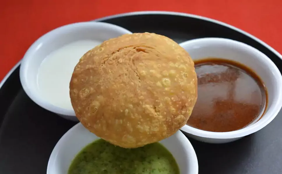 A must-try in Jaipur! The famous pyaz kachori is a crispy, deep-fried pastry filled with a spicy onion mixture. It's a local favorite that will make you fall in love with street food.