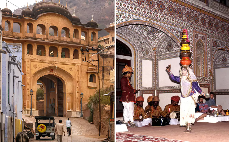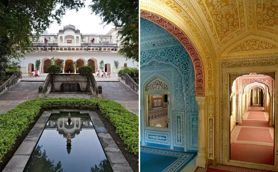 • Samode Haveli: A heritage mansion featuring an elegant dining room, airy passageways, and a historic elephant ramp.