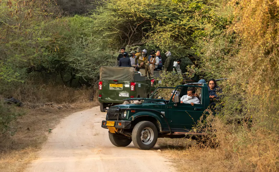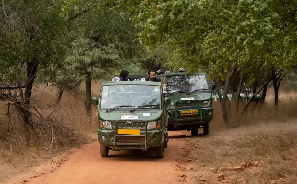 Your exciting safari adventure begins with pickup from your hotel or preferred location in Jaipur. For the morning safari, the pickup time is around 6:00 AM, while for the evening safari, it will be around 4:00 PM. A comfortable 30-40 minute drive will take you to the Jhalana Leopard Safari Park.